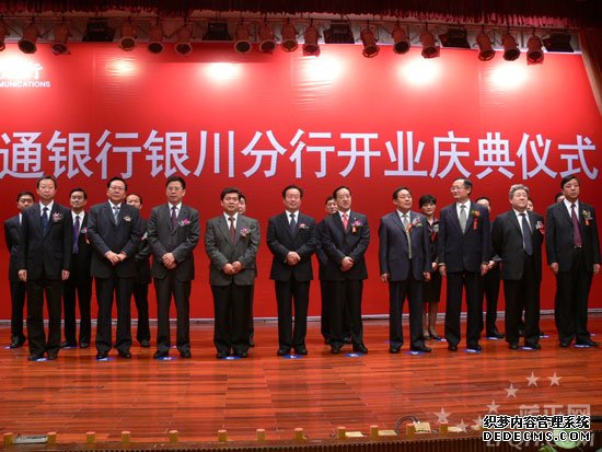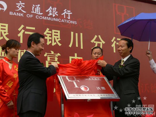 9月12日上午,中國交通銀行銀川分行正式掛牌成立,寧夏回族自治區(qū)黨委書記陳建國,自治區(qū)黨委副書記、自治區(qū)代主席王正偉,自治區(qū)政協(xié)主席任啟興,自治區(qū)黨委常委徐松南、劉曉濱、齊同生等領(lǐng)導出席開業(yè)慶典,中國交通銀行董事長蔣超良和副行長王濱也專程來寧出席揭牌儀式。